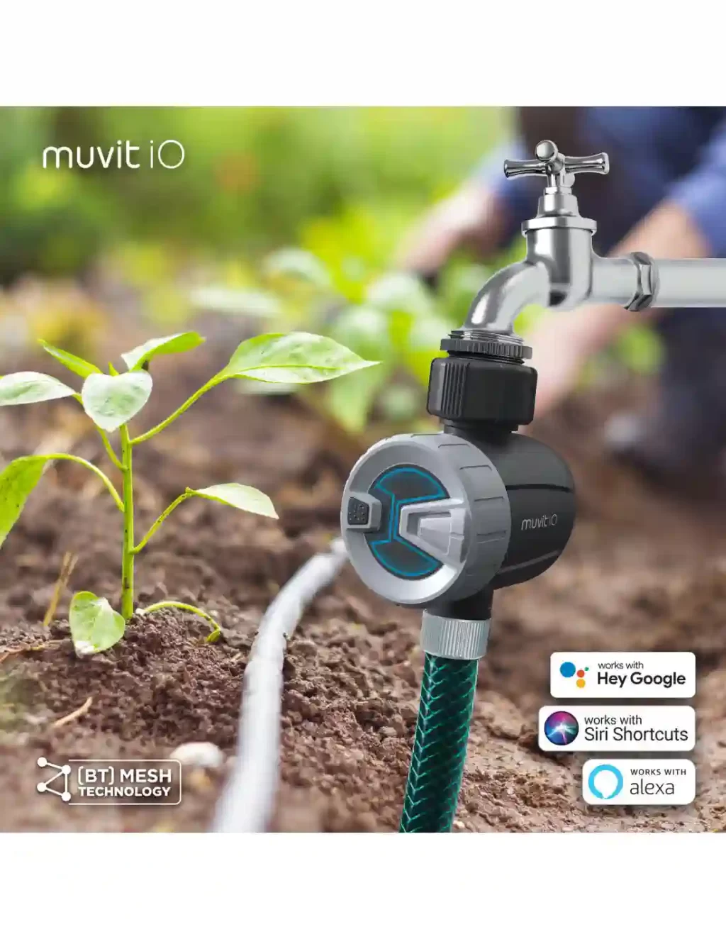 Despreocúpate del riego si no estás en casa o no tienes tiempo y cuida de tu jardín de manera inteligente con el nuevo sistema de irrigación muvit iO.